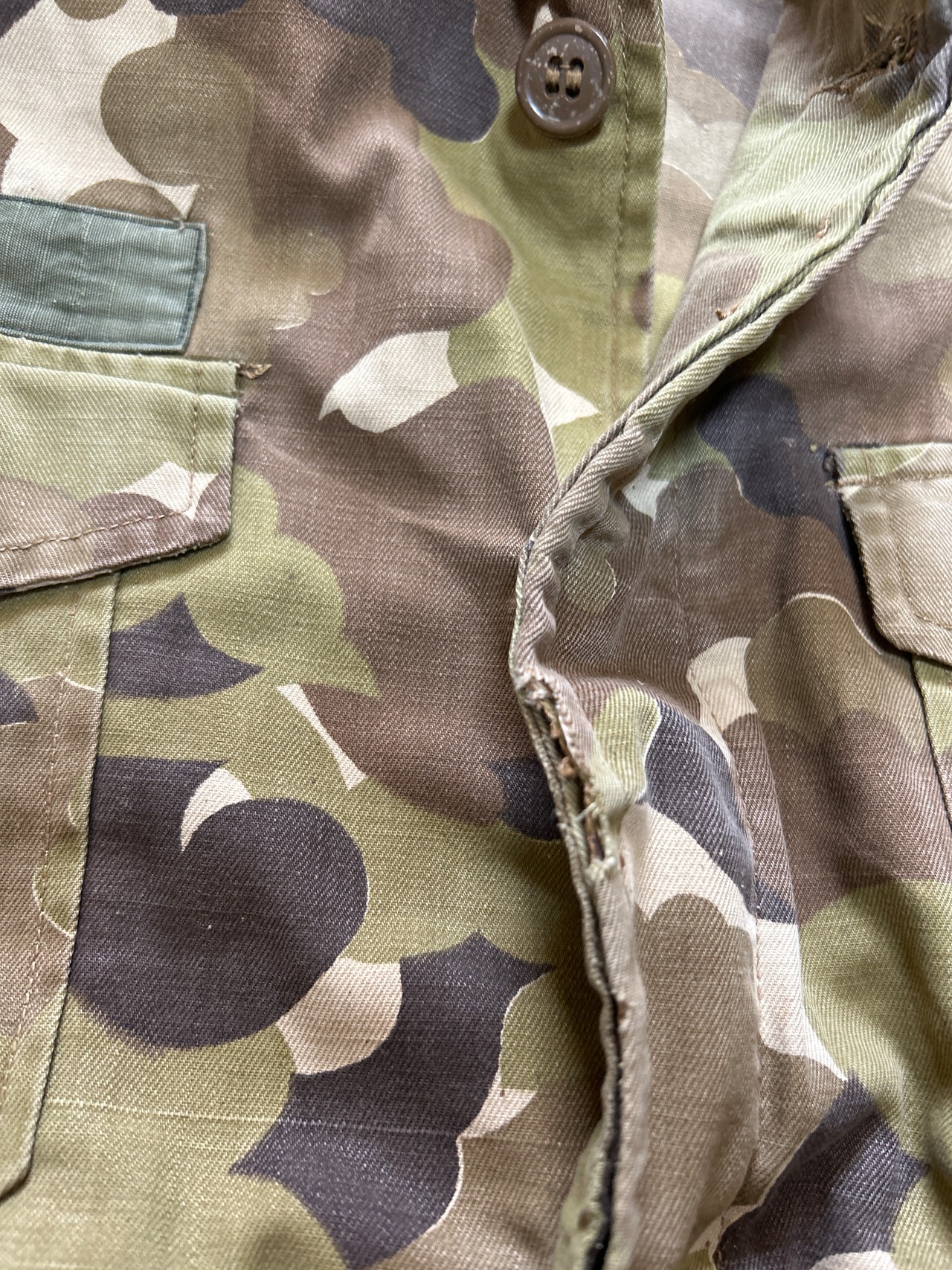 ベトナム軍の迷彩はフランスやアメリカの迷彩をベースにされた物が多く、このクラウドカモは、米軍のリバーシブルのミッチェルパターンの茶色側をコピーされています。