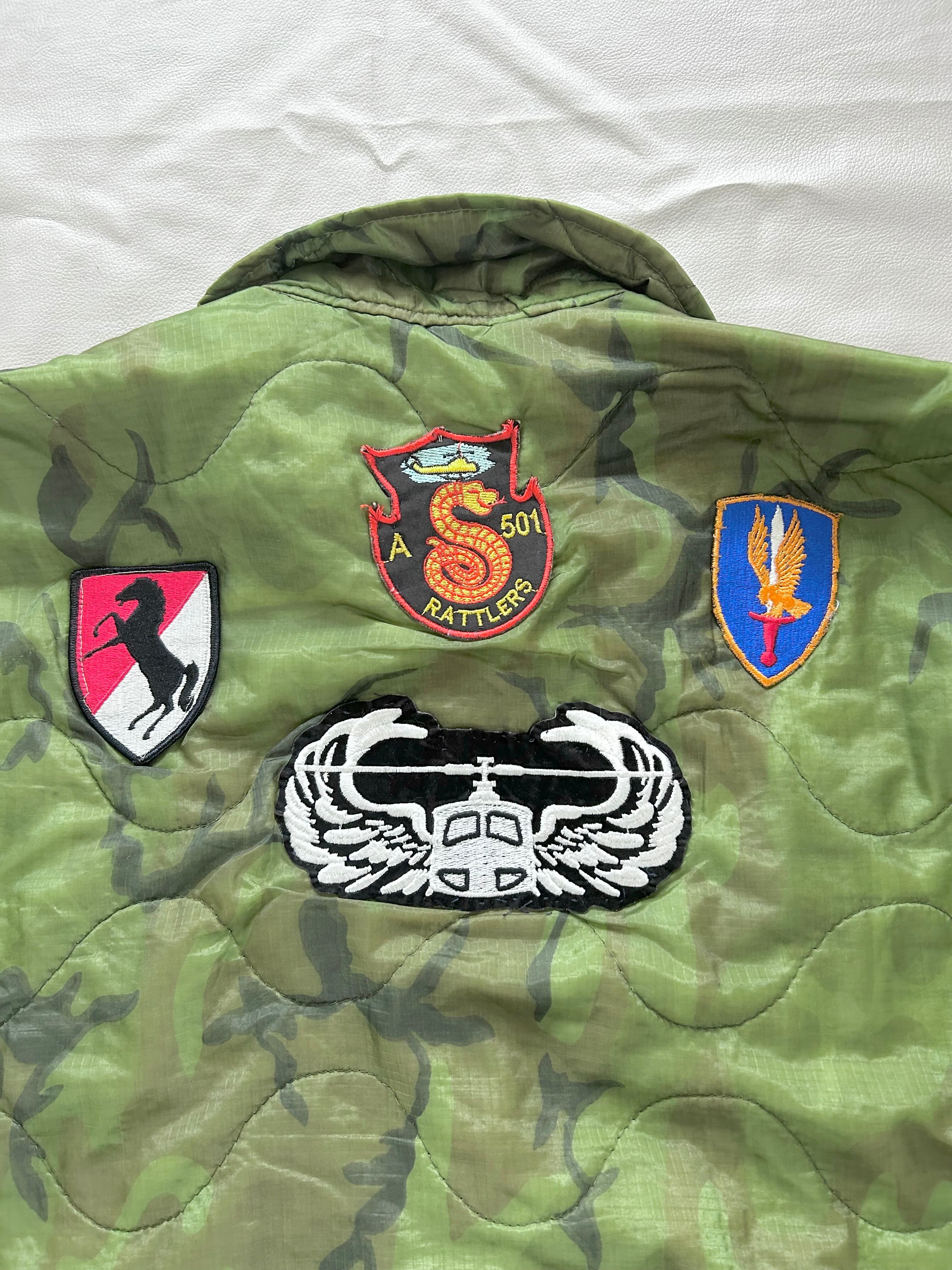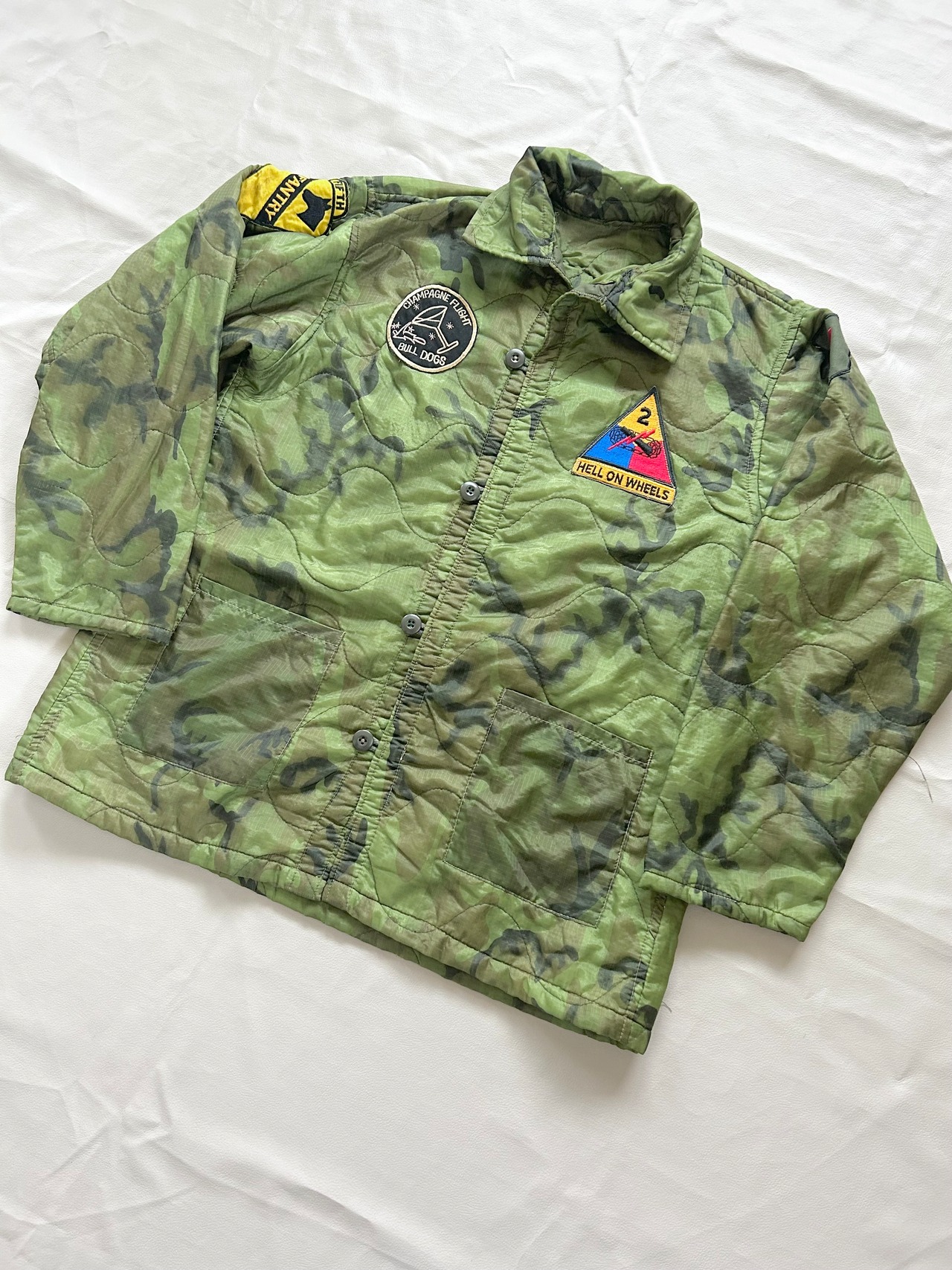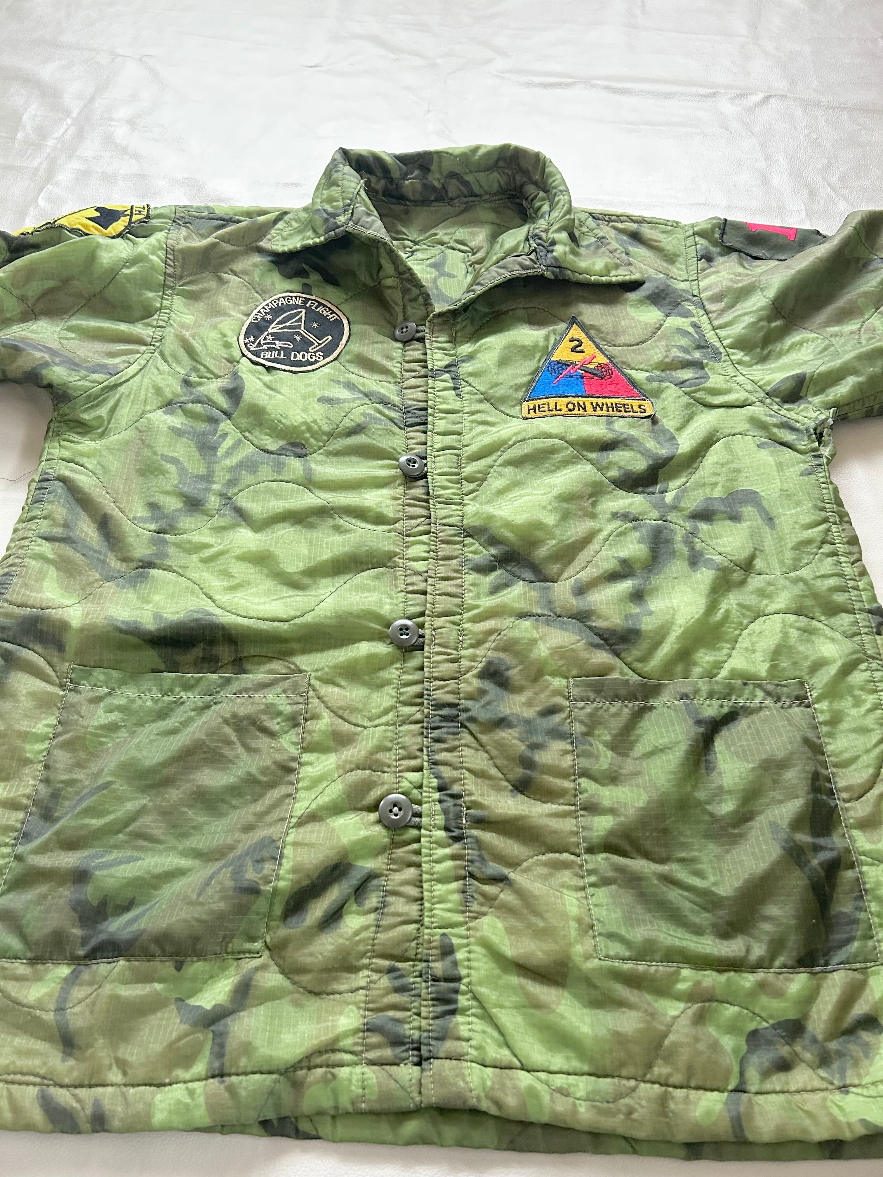 60年代から70年代頃のベトナムカモキルティングジャケットです。刺繍の施されたベトジャンが有名ですが、こちらは、その刺繍の無いプレーンタイプです。前の併せがボタンになっている珍しいtypeとなりますが、恐らくリメイク品かと思われます